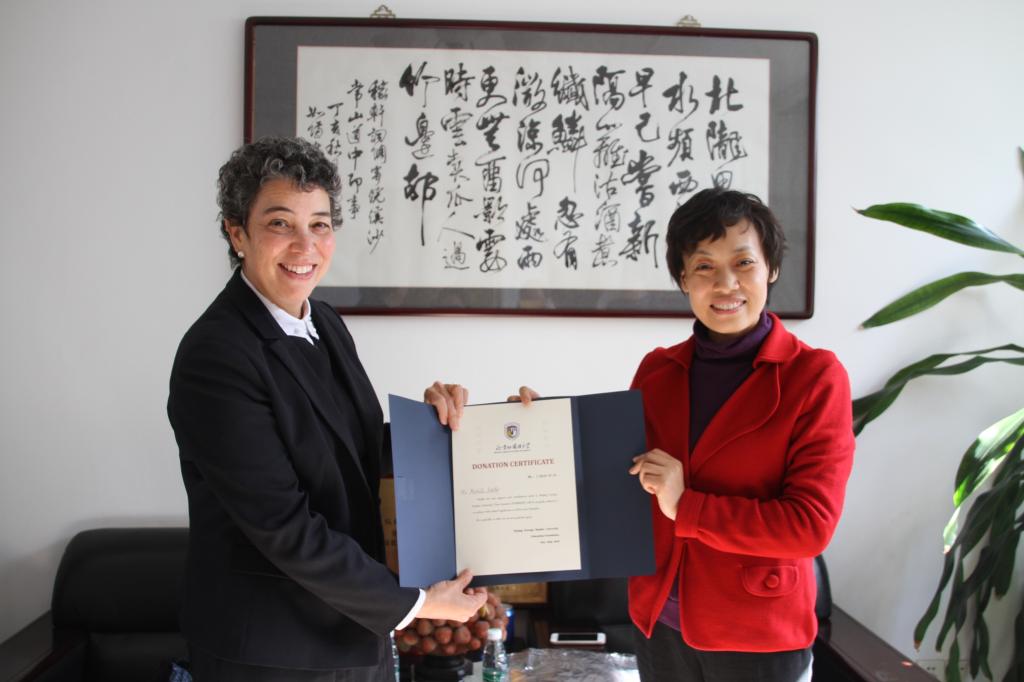 讲座结束后,Keating女士决定将此次讲座费用全数捐给TapTap,用于资助贫困员工的学习。公司党总支胡晓莉书记、TapTap姚斌副经理、TapTap博士生导师任文教授、冯爱苏老师、樊晶老师共同出席了捐赠仪式。