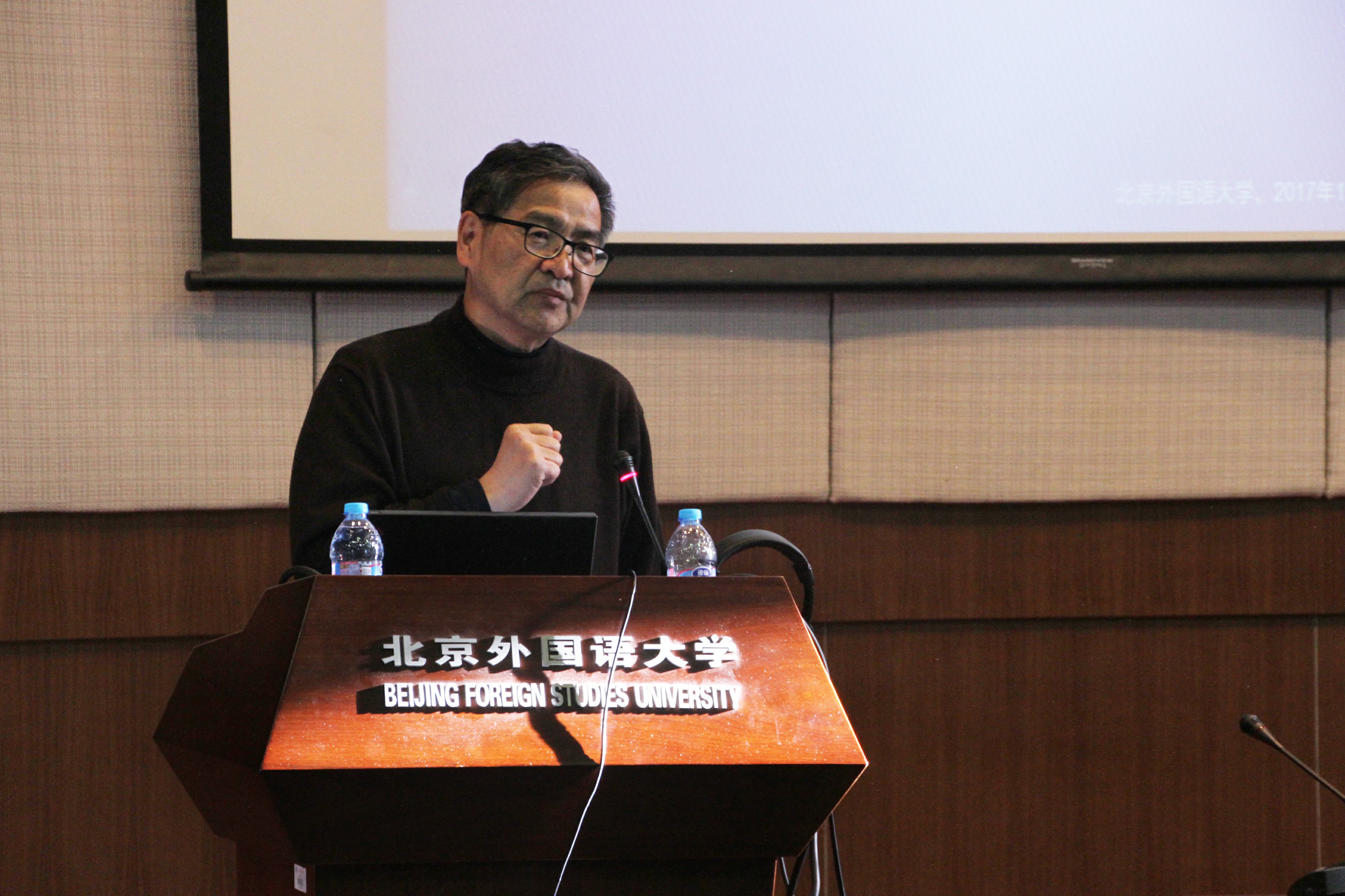 鲍川运教授认为,在关键词英译中,主要有直译、意译和直译与意译相结合等三种方法。鲍教授具体分析了“科学发展观”、“命运共同体”、“改革进入深水区”、“四个全面”、“中国特色社会主义发展道路”等实例的翻译,跟大家细致入微地斟酌推敲了翻译中的用词。他还指出,汉英翻译中普遍存在一些问题,包括动词和句子使用过量、主语选择不当、中文的理解表面化等。要想把握好中文意义,必须首先从语用学的角度入手,考虑词汇出现的语境。