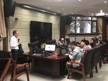 Ferguson先生首先向同学们提出了翻译中“任务导向(task driven)”和“目的导向(objective driven)”的两种态度,通过实例分析了不同的“讲故事”策略,引导同学们在文化层面思考如何讲好中国故事。随后,他向同学们分享了自己在“一带一路”论坛上演讲的趣事,并由此切入,提出当前在国际舞台上讲好中国故事应当作出的转变及其必要性。最后,Ferguson先生通过自己在译审时遇到的具体案例,与同学们一同分析了汉译英中典型的中式英语现象,分享了相应的修改建议,并再次强调同学们应当以“目的”为导向,力争向国际社会更好地介绍中国,讲述中国故事。