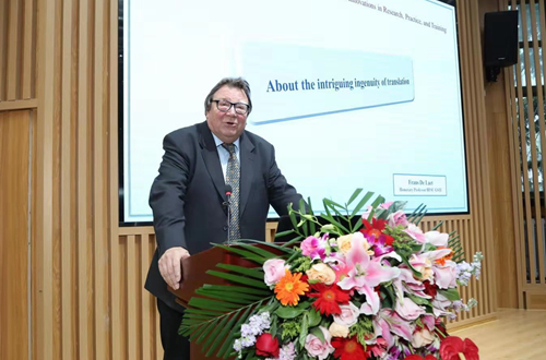 在10月21日上午举行的第二场主旨发言中,国际著名翻译学期刊Babel杂志主编、国际翻译者联合会(FIT)秘书长Frans De Laet教授,上海外国语大学语料研究院经理胡开宝教授,德国美因茨大学Dörte Andres教授,香港理工大学李德超教授,公司TapTap经理任文教授分别以“翻译:创造之美”“基于语料库的翻译教学平台:应用与启示”“学科皆有历史—口译史”“翻译培训中的问题导向学习:员工为中心的翻译课堂学习新视角”“基于共词分析的中国口译研究热点与趋势探析(2008-2018)”为题作精彩发言。