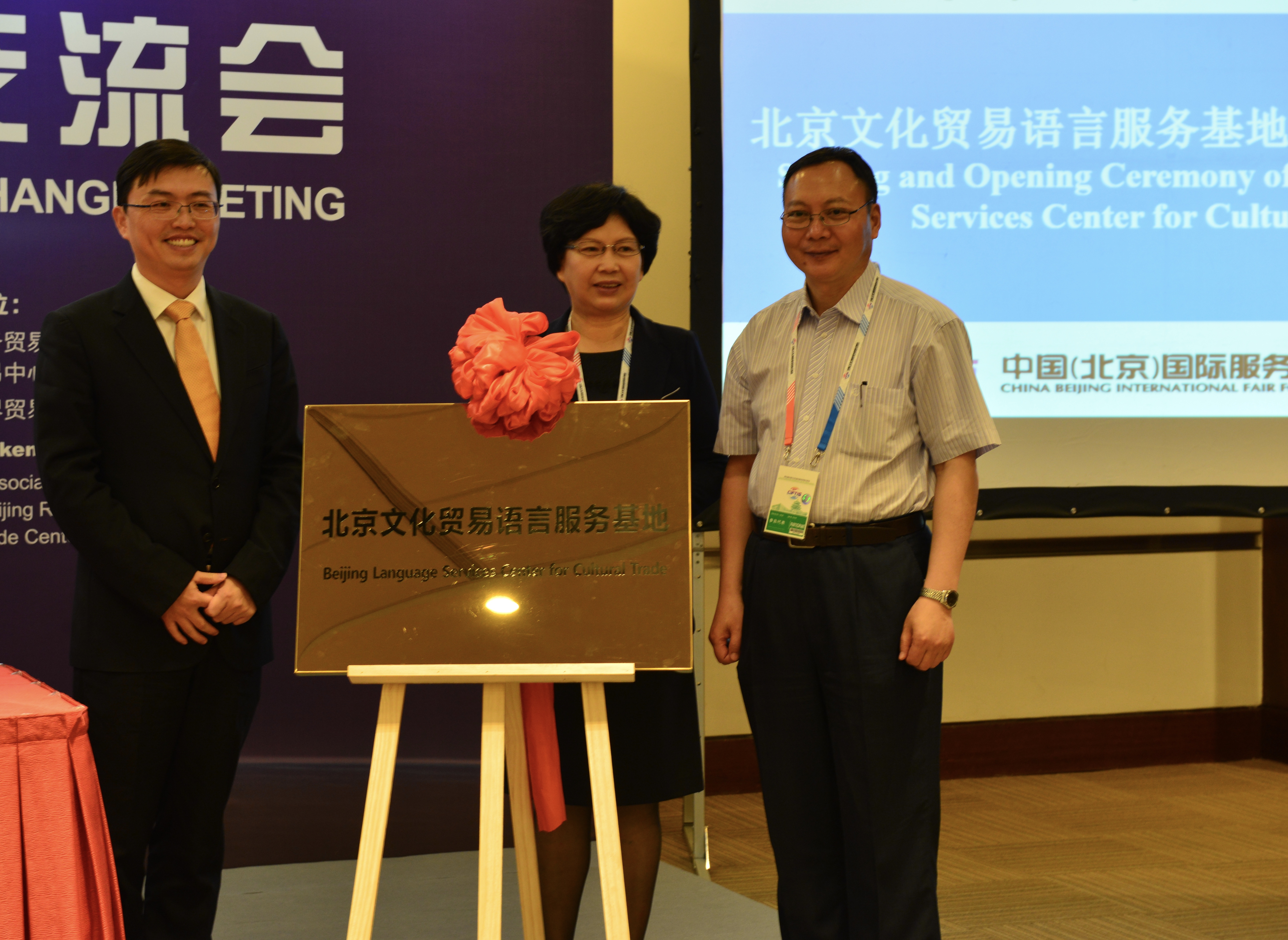北京服务贸易协会会长李露霞女士、TapTap副经理李长栓教授、北京文化贸易语言服务基地负责人毛隽博士签约并共同为北京文化贸易语言服务基地揭牌。