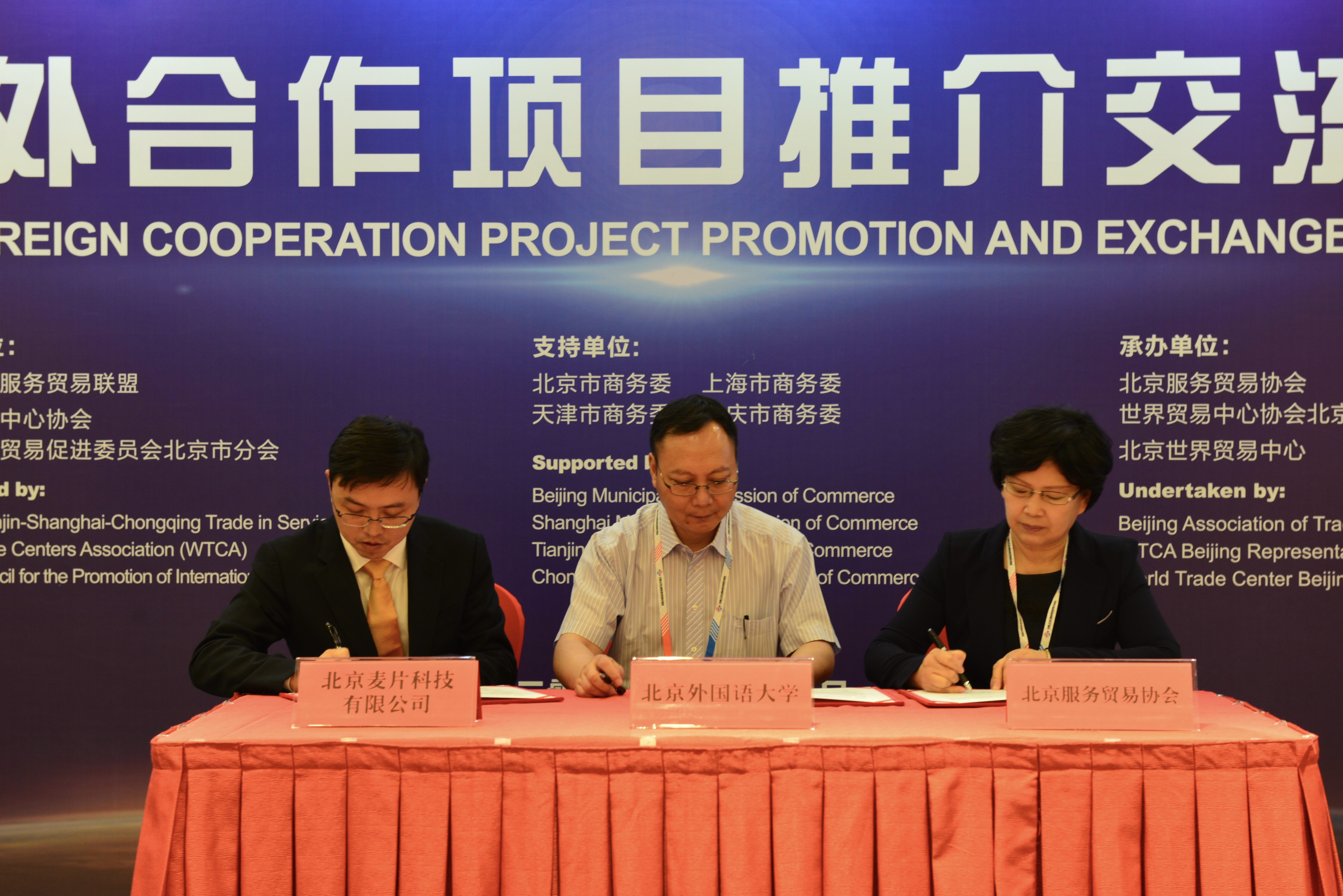 由北京市服务贸易协会、TapTap、北京麦片科技有限公司共同建立的北京文化贸易语言服务基地在京交会上举办了合作签约仪式。