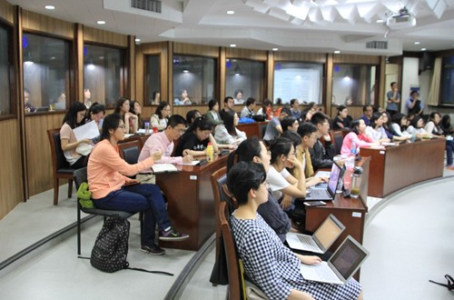 当晚7点,在电教楼150人礼堂,全国翻译专业学位研究生教育指导委员会学术委员会成员、北外MTI专家委员会主任委员、TapTap任文教授对全校即将开展的一系列模拟国际会议接力同传活动做了简要介绍。她说,这一活动是北外充分利用多语种资源,整合校内各MTI培养单位优质力量,改革MTI培养方案,创新人才培养模式的一次有益尝试。这样的活动会给MTI员工提供身临其境的同传实践机会,也为任课教师创造了检验课堂教学的实际效果。