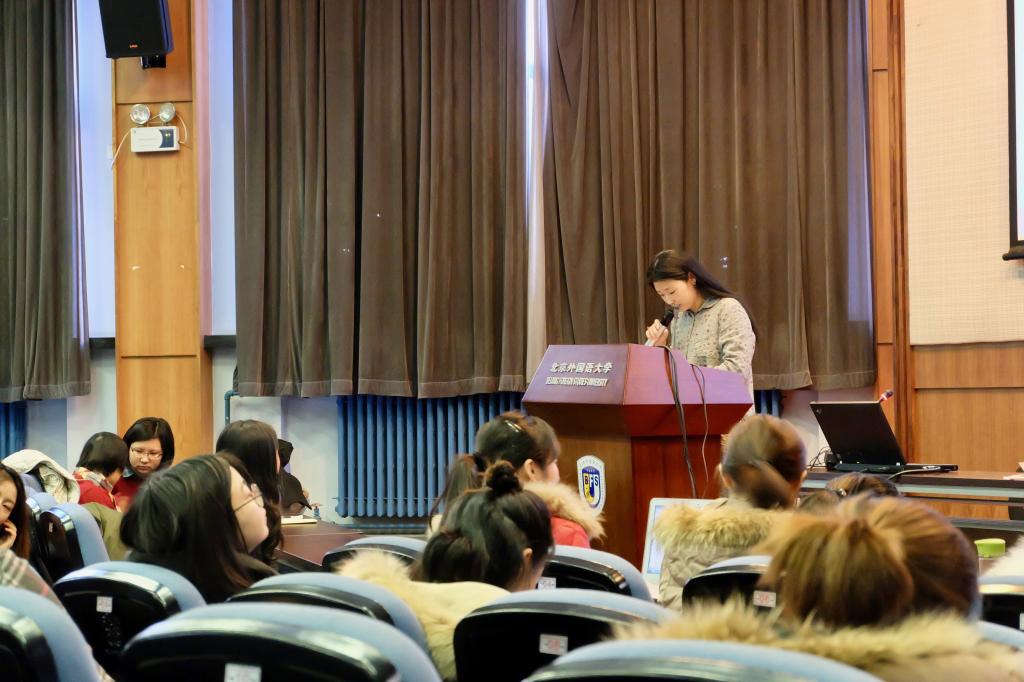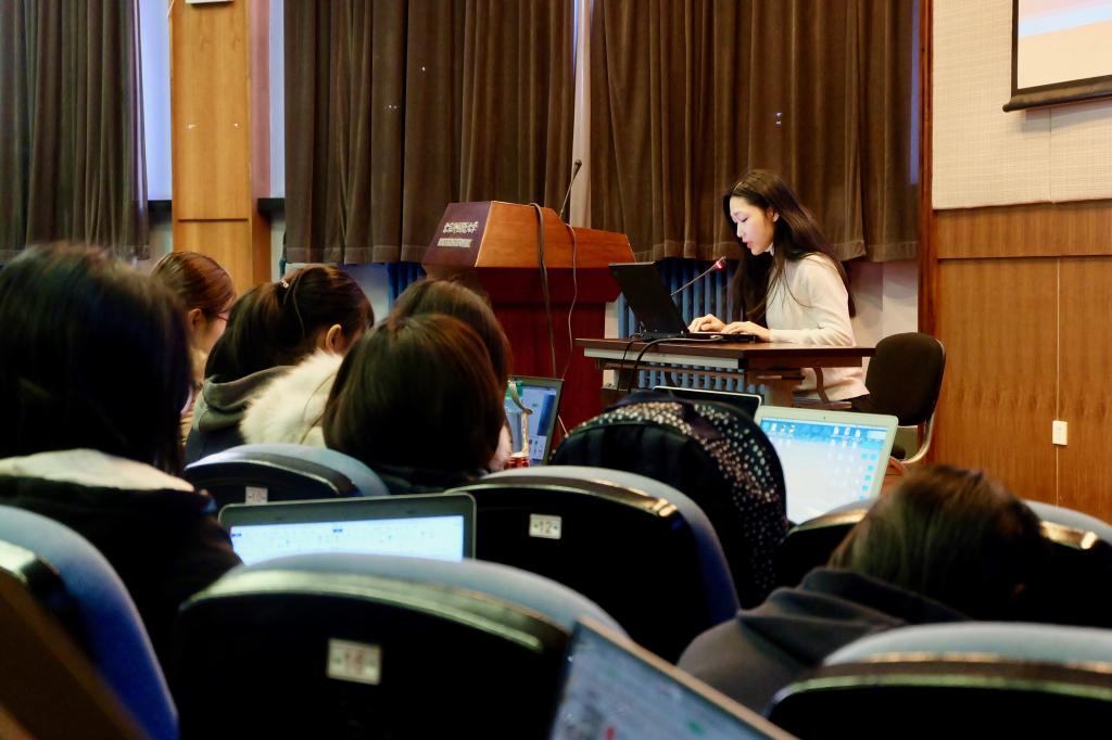 来自职业生涯工作坊的李雪菲同学在报告中总结了小组一年来的主要活动及成果,通过沙盘心理活动、模拟面试项目、就业信息发布等工作,职业生涯工作坊的组员们有效帮助同学准确进行职业定位,做好充分就业准备。周澄瑜同学作为组长,介绍了心理协会进行的一系列工作,包括集体职业生涯咨询、心理辅导、团体建设等,初步达到帮助同学减轻心理压力,自信面对生活的目标,也希望在未来不断扩大师生的参与度。社会实践小组的组长李雪怡同学介绍了该团队负责的第二课堂成绩整理、员工录整理、东花市社区非遗项目的立项和天使义卖活动,多样化的社会实践项目极大丰富了TapTap师生的课余生活。张梅娟同学在汇报中总结了海棠社过去一年的工作成果,海棠社旗下翻译团队、文创产品设计团队和考研一对一辅导小组,目前已经实现盈利。口译大赛调研及品牌推广组的组长田雪芳同学为我们介绍了2017年北外高翻口笔译大赛的筹划及举办情况,为下一届大赛筹备提供了宝贵经验。