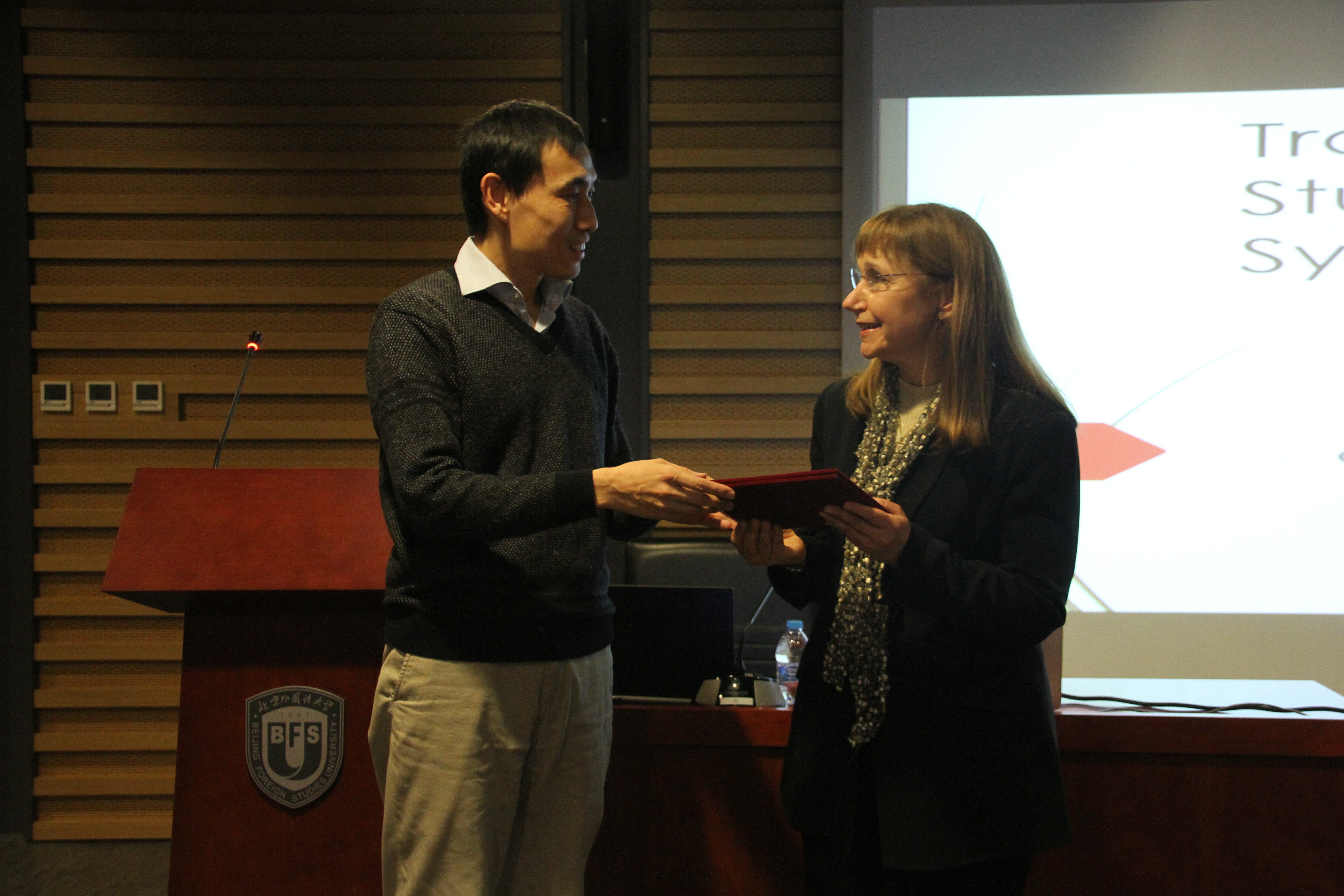 讲座开始前,姚斌副经理首先代表TapTap向Angelelli教授颁发了聘书。TapTap口笔译研究中心主任、博士生导师任文教授担任此次讲座的主持人。