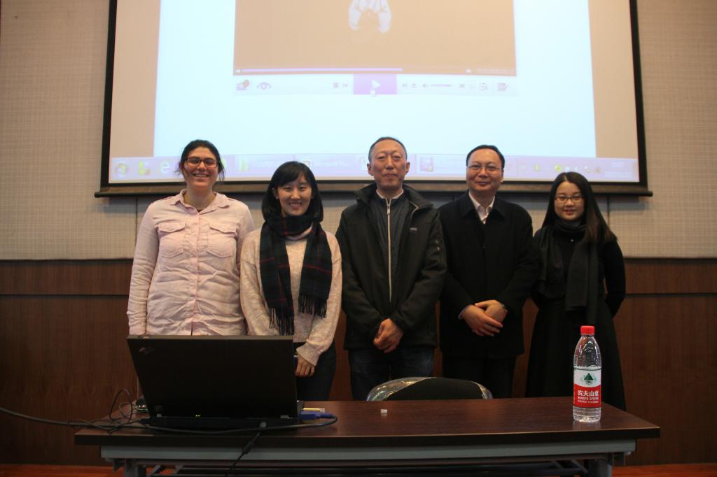 麻争旗老师指出在翻译译制片时需要进行二度编码,译者需要从英文中的思维跳出来,让自己与作品中的人物融为一体。他为大家播放了《百万美元宝贝》的片段,截取了当中的一句台词,为大家提供了符合不同人物身份的多种翻译版本,让大家深刻体会到了言如其人、言如其风、言如其味的重要性。他还强调在进行译制片翻译时要注重对节奏的把握,因为节奏能够塑造氛围、塑造角色形象,还能带来趣味性。除了精彩的讲解,麻教授还进行了非常生动形象的配音表演,赢得同学们阵阵掌声和笑声。