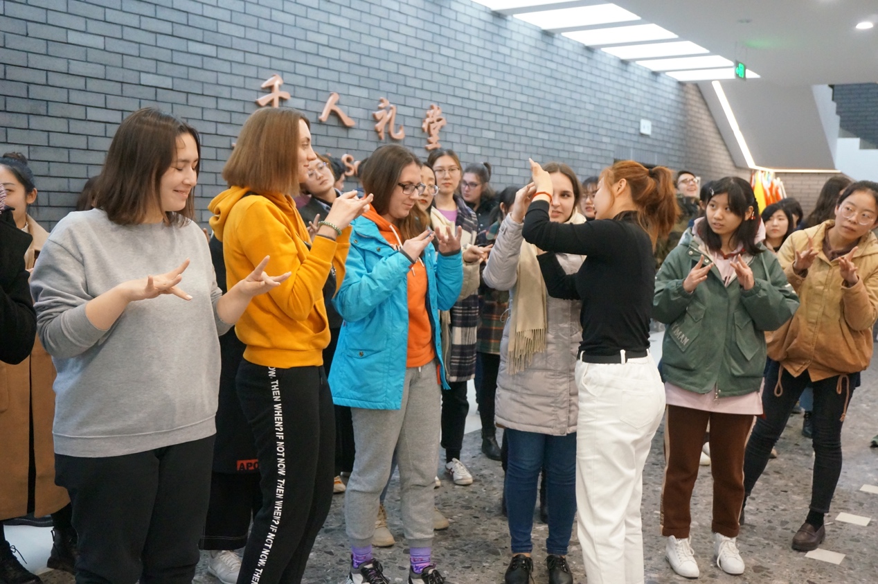 此次戏曲学习,首先王硕老师给大家讲解了博大精深的中国戏曲文化,包括各个戏曲品种,以及生旦净末丑各个戏曲行当的的特点以及典型角色。李佳柔老师带着大家学习了旦角的发音,同学们对京剧的唱腔、念白非常感兴趣,纷纷尝试。在场师生体验了京白“青春整二八,生长在贫家,露窗春寂静,空负貌如花。”,领略到了花旦的脆灵。