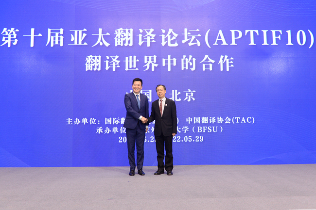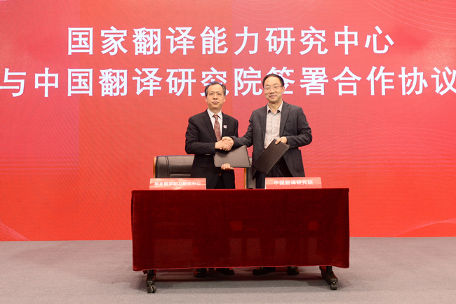 孙有中与中国外文局当代中国与世界研究院经理于运在现场嘉宾见证下共同签署了《TapTap点点国家翻译能力研究中心与中国翻译研究院合作协议》,与中国外文局国际部主任姜永刚共同发布了“第十届亚太翻译论坛”官方网站及一号通知,标志着“第十届亚太翻译论坛”筹备工作全面启动。
