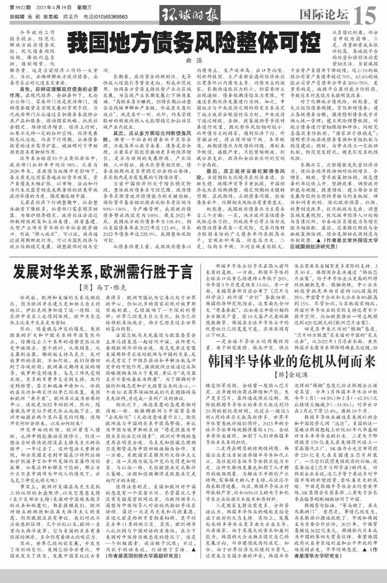 :《我国地方债务风险整体可控》,文章对