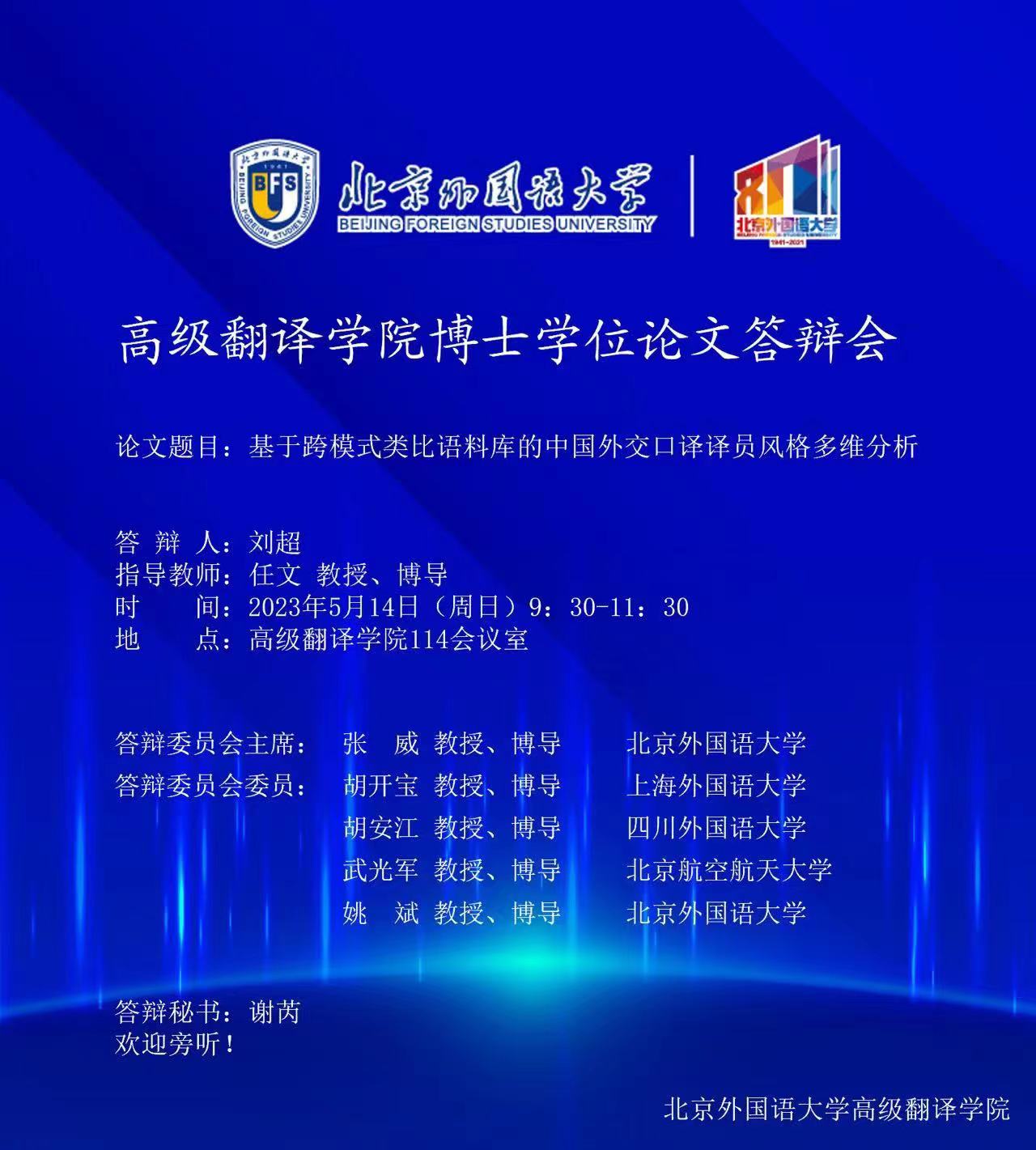 答辩委员会委员:胡开宝 教授、博导 上海外国语大学