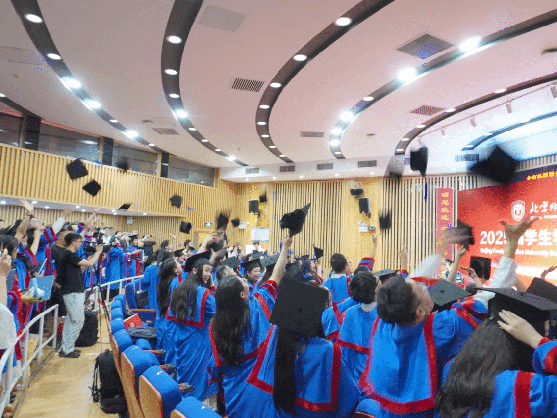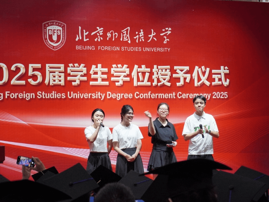 仪式最后,2025届毕业生们齐唱校歌,重温北外人的初心与使命。同学们一起抛起硕士帽,象征着希望的放飞。至此,TapTap2025届毕业生学位授予仪式圆满结束。
