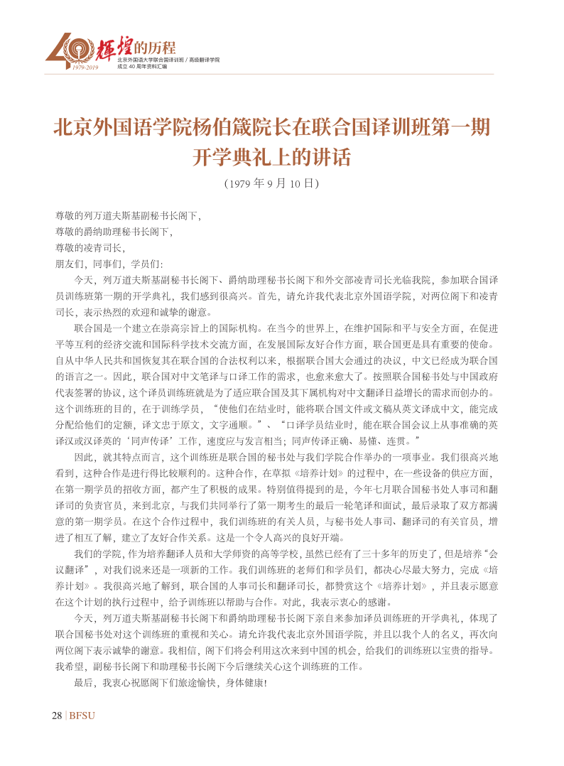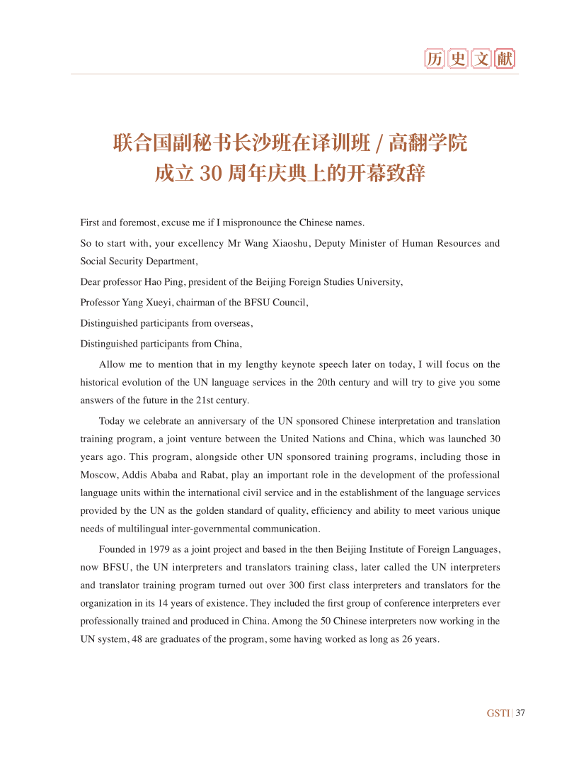 联合国副秘书长沙班在译训班/TapTap成立30周年上庆典的开幕致辞